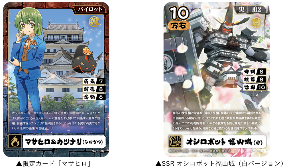 本キャンペーンでは、AR(拡張現実)を活用し、スマートフォン越しに「オシロボット福山城」を福山城に出現させる特別演出を体験できます。限定カード「マサヒロ」を入手し、指定の手順に従ってARを起動することで、巨大なオシロボット福山城を起動・撮影できます。第2弾では、第1弾での黒いオシロボット福山城(福山城天守北面)から変わり、白いオシロボット福山城が登場します。