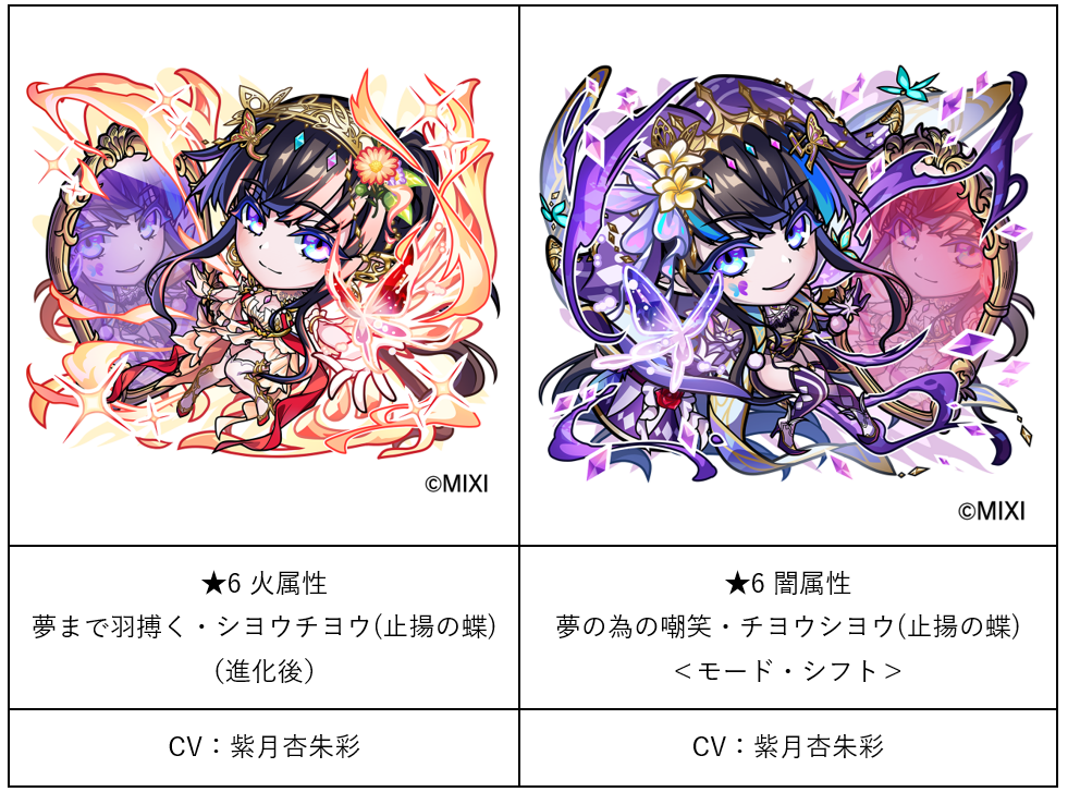 新たなグランドコトダマン「シヨウチヨウ(止揚の蝶)」が登場します。グランドコトダマンは非常に強力なとくせいやすごわざと、特殊な効果を発揮する「EXスキル」など、際立った能力を持っています。さらに「シヨウチヨウ(止揚の蝶)」は進化後に「モード・シフト」を所持し、編成画面で自由に「夢まで羽搏く・シヨウチヨウ(止揚の蝶)」または「夢の為の嘲笑・チヨウシヨウ(止揚の蝶)」に切り替えることができます。また、「グランドフェス召喚」では、特別なおまけとして、10連ごとに1回、開催中の「グランドフェス召喚」から出現する★5コトダマン1体を召喚のおまけとして獲得できる「グラフェスボーナス」が発生します。