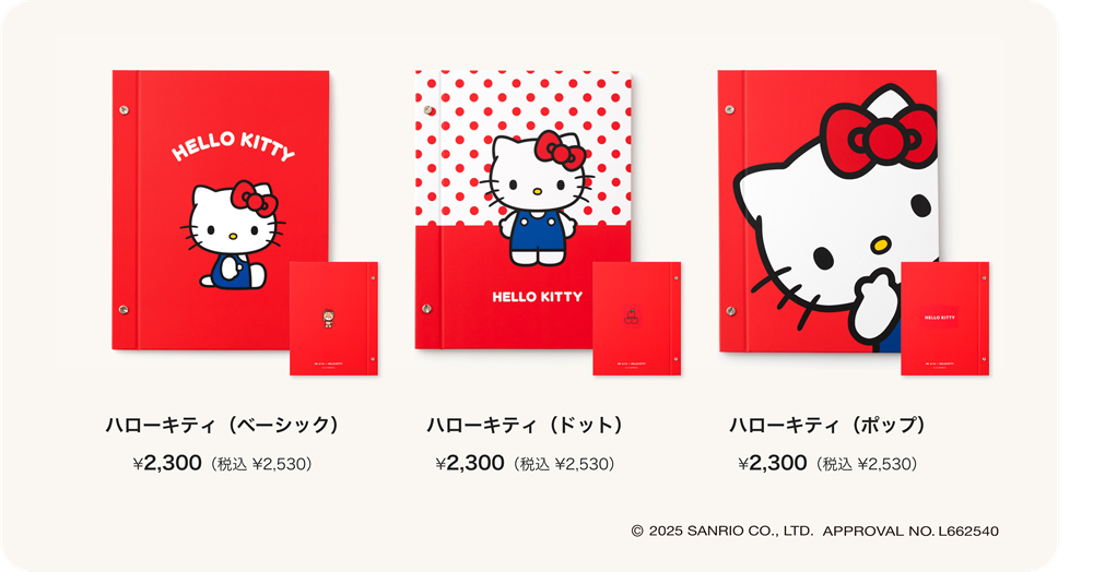 「写真アルバム」のデザインは、シンプルで定番の「ハローキティ(ベーシック)」、水玉模様が可愛らしい「ハローキティ (ドット)」、そしてポップな印象の「ハローキティ (ポップ)」の3種類からお選びいただけます。「みてね」の写真プリント専用アルバムは、「ハローキティ」デザインに加え、全12色の「無地アルバム」や、天然素材をベースにやさしい色合いに染めた布張りの「ぬのアルバム」といった既存の豊富なラインナップもご用意しており、お客様はより多彩な選択肢からお好みの「写真アルバム」を自由に選べるようになりました。