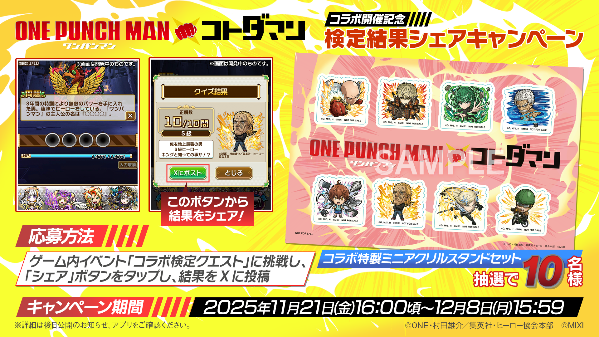 アニメ「ワンパンマン」×「コトダマン」コラボ11月21日(金)より開催!「サイタマ」「ジェノス」「戦慄のタツマキ」などがコラボ召喚に初登場!
