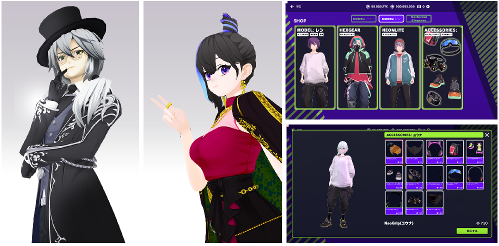 アバターは標準設定の他にゲーム内無料通貨(LUX)や有料通貨(NEWON)で購入することができ、カスタマイズが可能です。