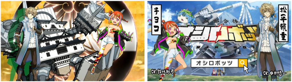 株式会社MIXI(東京都渋谷区、代表取締役社長 上級執行役員 CEO:木村 弘毅)は、MIXI_ANIMEオリジナルコンテンツ『城郭合体オシロボッツ』において、オシロボット高松城パイロット「チヨコ」役を鈴代紗弓さん、シロダマ(武将)「松平頼重」役を中村悠一さんが担当することをお知らせします。また、新たにセリフを加え、一部カットを再撮影した準新作映像も同時公開しました。キャスト発表を記念して、サイン入り解説書(チラシ)が抽選で当たるキャンペーンも実施します。今後も各オシロボットのパイロットおよびシロダマ(武将)のキャラクターボイス(CV) を順次追加していく予定です。