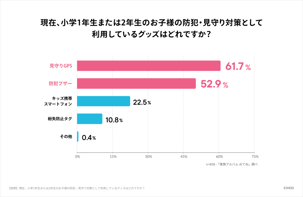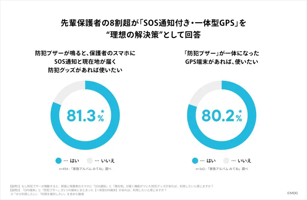 株式会社MIXI(東京都渋谷区、代表取締役社長 上級執行役員 CEO:木村 弘毅)は、この春に小学校へ入学する新一年生の保護者の防犯グッズ選びを支援するため、GPS端末や防犯ブザーを実際に利用している小学1〜2年生の保護者1,545名を対象に、利用実態や課題、そして経験者だからこそわかる、本当に必要な機能を明らかにする調査を実施しました。