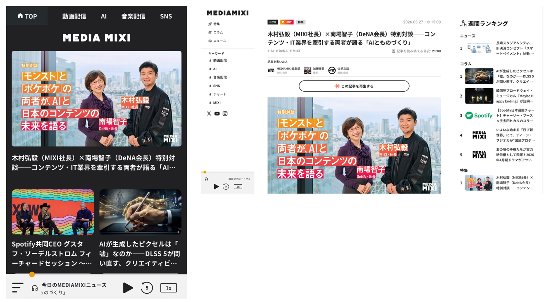 MIXI、音声読み上げ機能搭載のWEBを中心とした総合メディアプロジェクト「MEDIAMIXI」を始動