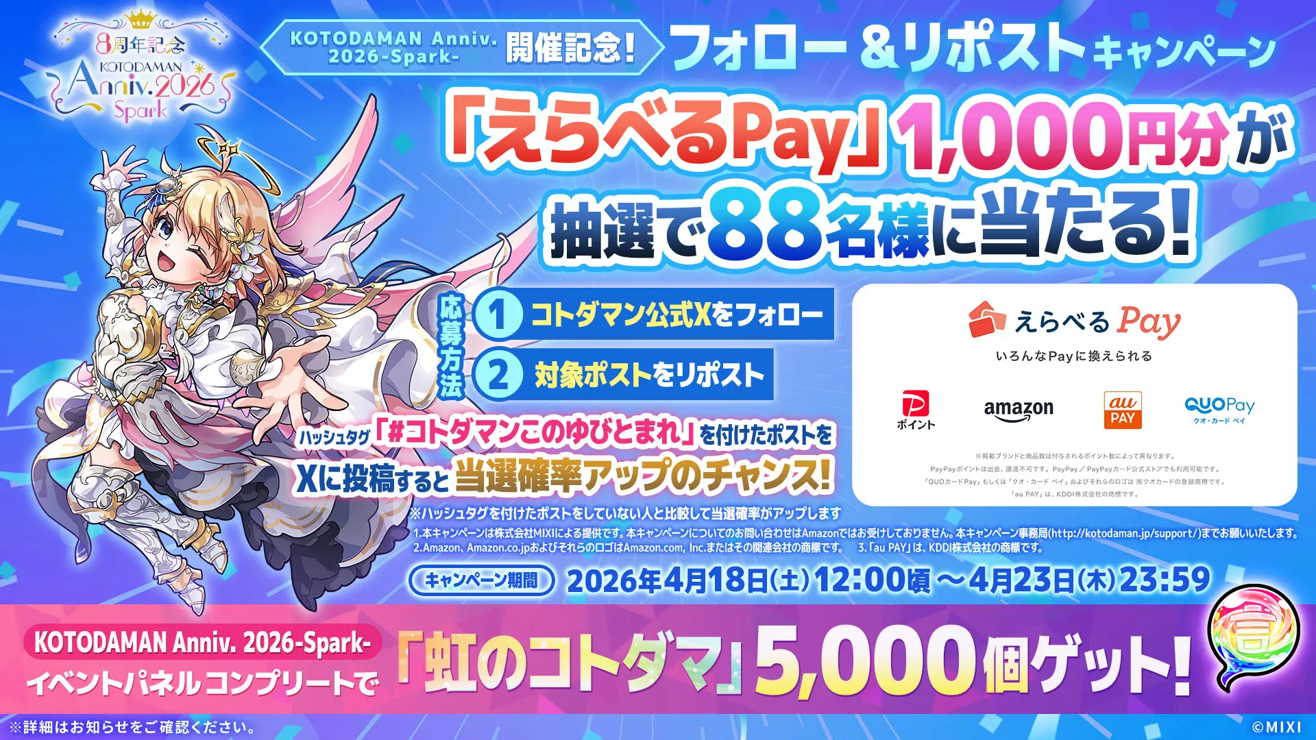 | キャンペーン名称 | KOTODAMAN Anniv. 2026 -Spark- 開催記念! フォロー&リポストキャンペーン |