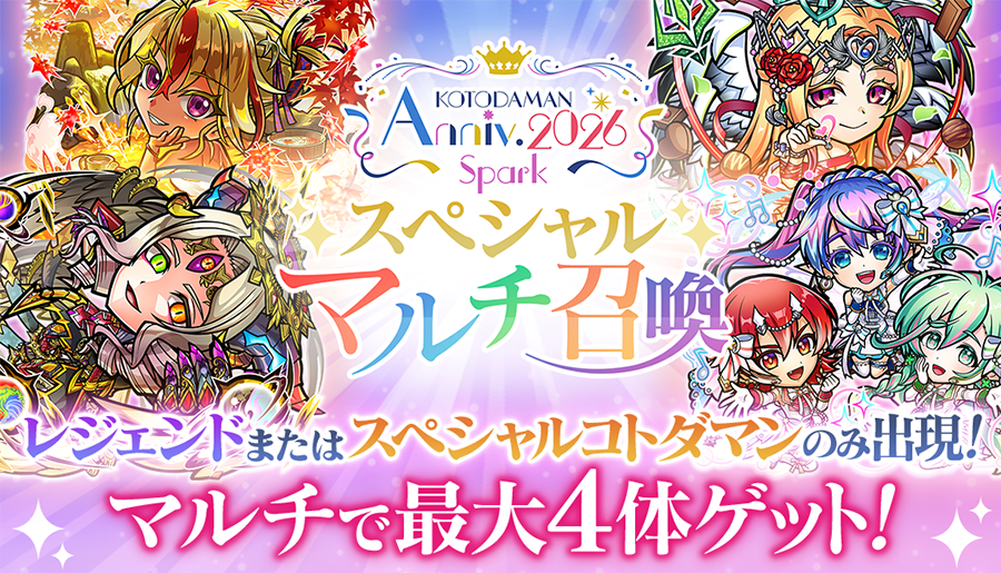 【4】マルチで最大4体ゲット!「KOTODAMAN Anniv. 2026 -Spark- スペシャルマルチ召喚」