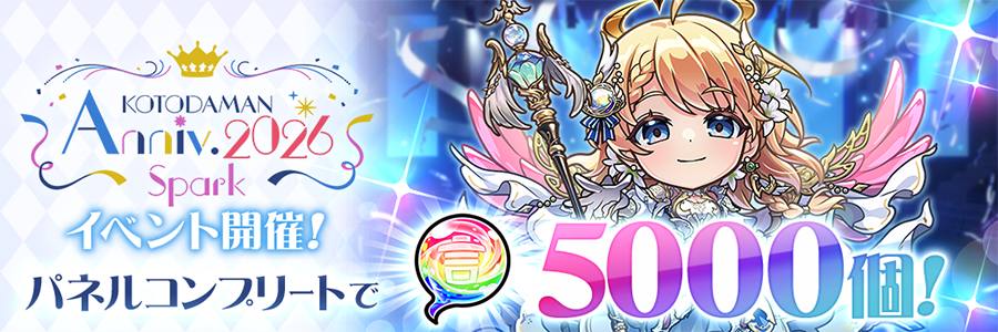 【3】コンプリートで「虹のコトダマ」5,000個!「KOTODAMAN Anniv. 2026 -Spark- イベントパネル」