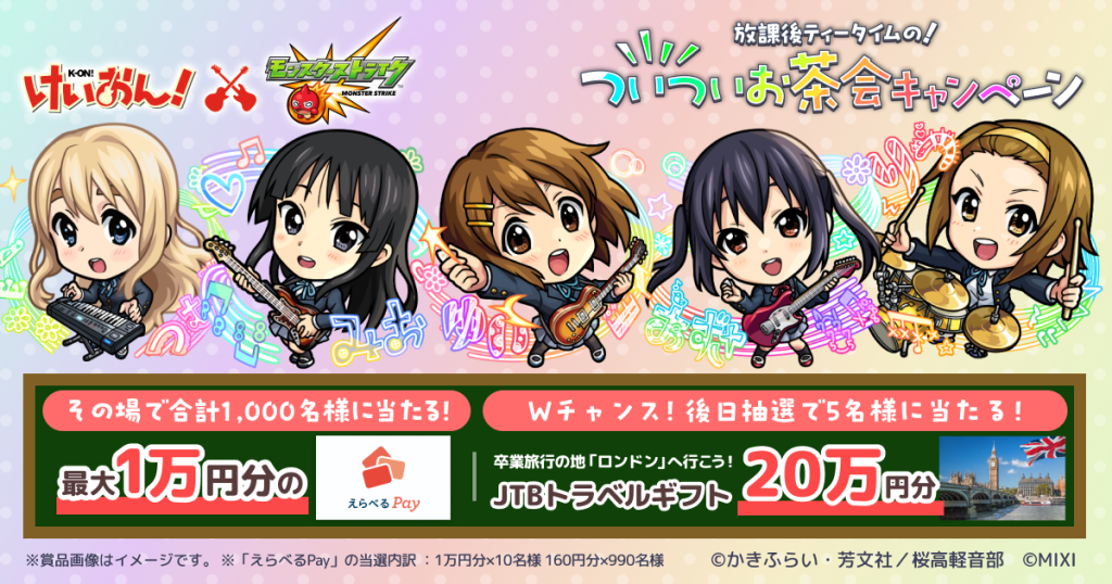 アニメ『けいおん!』×モンストコラボ記念!放課後ティータイムの!ついついお茶会キャンペーン